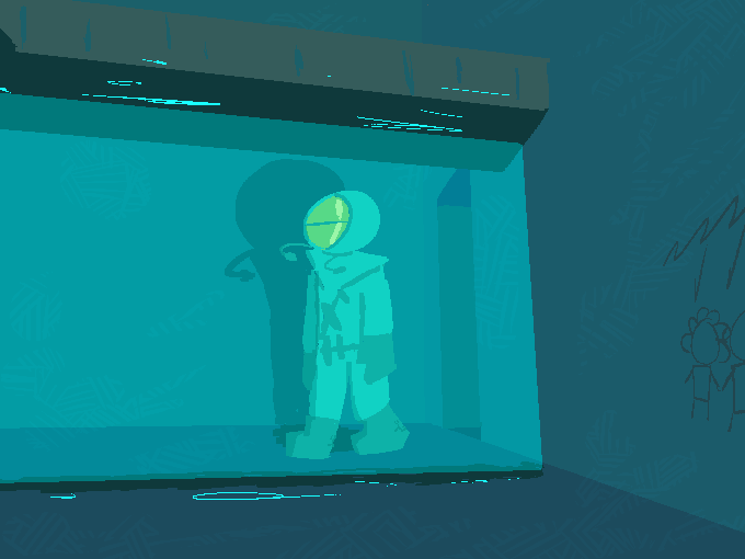 Oh. Just a delver. It clanks to the far side of the brig, with its tentacles hanging a left towards you. Like that’s a replacement for eye contact. It just sits down at a desk facing the cell, and begins tapping away at some terminal. What is it even doing?
