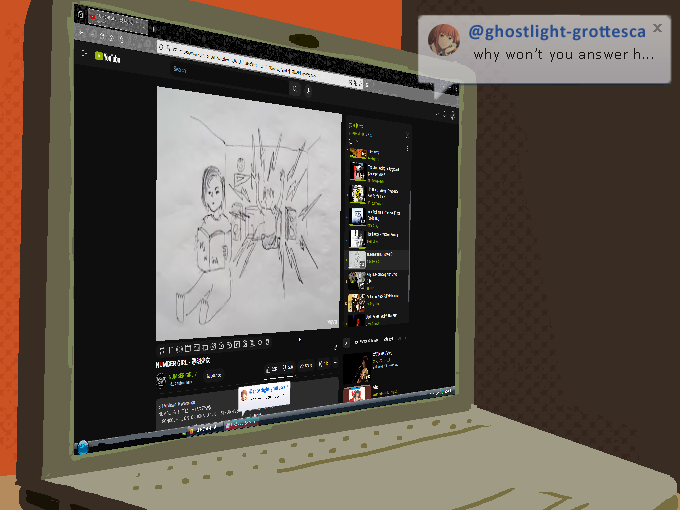 You live in PONTI FE, a little town built around some MYSTERIOUS RUINS. More specifically, you bunk in the basement of an auto shop. You and your BIG SISTER usually work on cars in the shop together by day, but it’s your day off. Eh, she’s better at it anyway. Cars are cool, sure, but MUSIC is your real passion. Right now, at least.