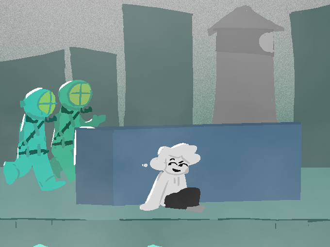 As they approach, you manage to hide yourself behind a metal crate. Phew, just out of their range of vision.