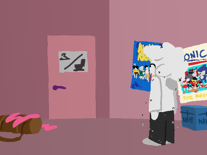 There’s your closet/bathroom hybrid. It’s a bit awkward, but you guess it makes the most sense? As a joke, you started buying a ton of the same outfit and storing them all in here, thinking it would be a funny gag for anyone you invited. You never did invite anybody, but the outfits you store here happen to be your favorite.