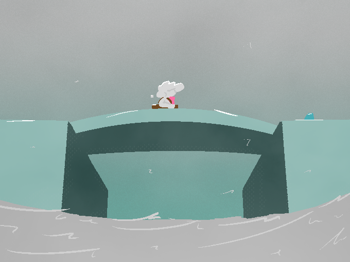 As you walk along the bridge, you listen to the murky water slosh below. Nothing lives in these seas. When you were twelve, you fashioned a hook and line out of garbage and spent a week hiding underneath the docks, hoping to catch a friend. No dice. Not even a big rubber boot. Just junk upon junk upon junk.